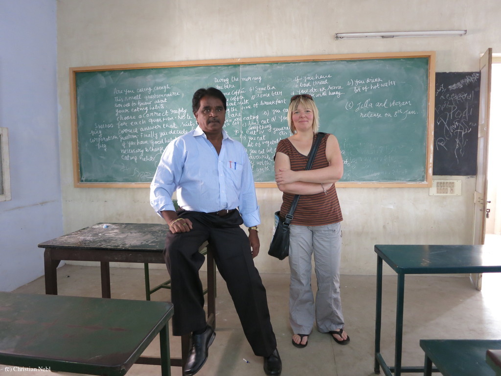 Hier gibts ja einige Ashrams. Und da man da rein schauen darf, machen wir das einfach mal. Vielleicht sollten die im Eingangsbereich einfach Schilder aufstellen, auf denen steht, dass man seine Schuhe ausziehen muss, dann müssten sie uns jetzt nicht hinterherrennen und wild gestikulieren. Einen Bookshop gibts auch. Also in diesem Ashram einen recht kleinen, da gibts Bücher über alle möglichen heiligen Männer, die man teilweise auch bei uns kennt und hinten links sehen wir ein bekanntes Gesicht. Also ein Gesicht, das jeder kennt, aber man bei uns nie sieht. Umrandet von indischen Schriftzeichen prangt dort das Antlitz von A. H. Ich mein, wir haben mittlerweile verstanden, dass die Inder meinen, Dank dem Krieg zwischen den Deutschen und den Briten haben sie ihre Unabhängigkeit wieder erhalten. Meines Erachtens ein klassischer Fall von mißverstandener Geschichte. Aber die Biografie von A. H. (ich mag den Namen nicht ausschreiben) in einem Ashram??!! Neben den Büchern von Sri Ramana Maharshi und zig anderen Yogis. Ich konnte es nicht lassen und habe den Shopbetreiber angesprochen, aber er kann da natürlich nichts dafür, meint er, denn es gab eben Nachfragen und deshalb hat er das Buch besorgt. Interessantes Klientel haben die hier, die meditieren also über den Frieden und lesen während der Ruhezeiten die Biografie von A. H.??!!